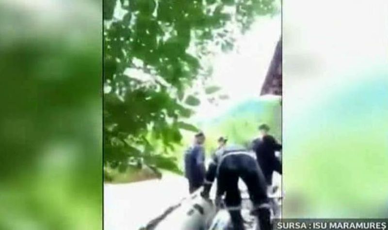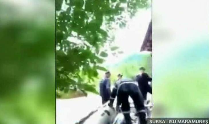 Sunt imagini chiar din mijlocul potopului- doar cu barca se mai circula pe ulitele din nordul tarii. Pompierii salveaza rand pe rand capra si iedul din gospodaria unei batrane. Bietele animale au fost la un pas sa se inece in tarc.