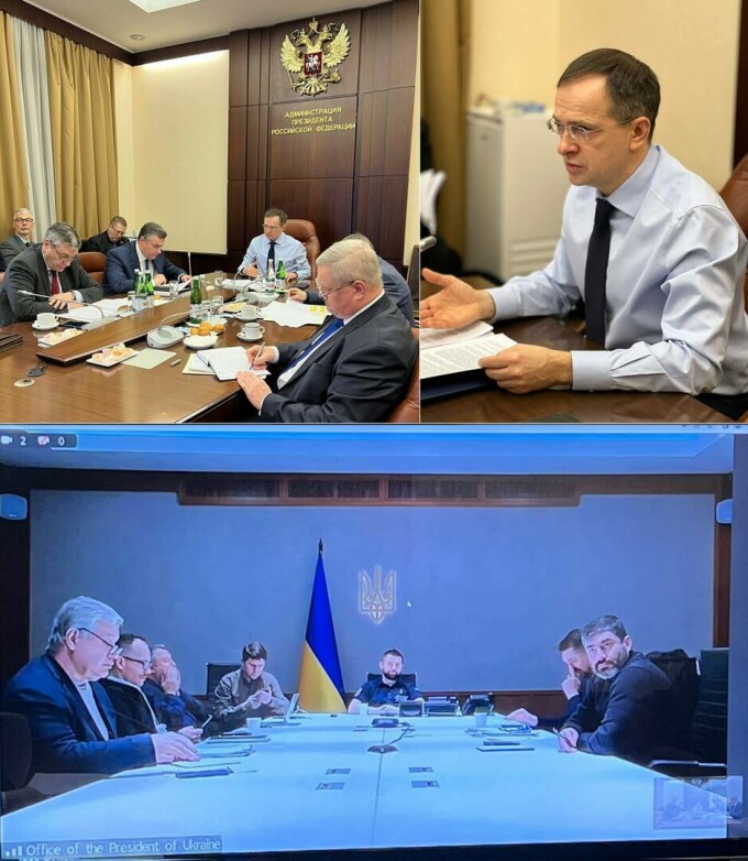 Negociatorul şef al rușilor, Vladimir Medinski, a declarat la acel moment: “Continuăm negocierile prin videoconferinţă. Poziţiile noastre cu privire la Crimeea şi Donbas nu s-au schimbat”, a indicat Medinski, care a publicat și fotografii de la aceste discuţii.