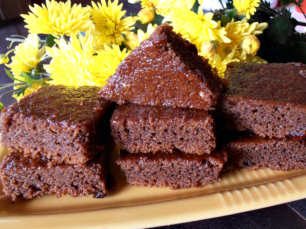 – 1 cana apa– 1/2 cana ulei– 4 linguri cu gem sau dulceata– 3 linguri cacao– o mana de nuci pisate (merge si cocos daca nu aveti nuci)– o lingurita rasa de praf de copt (praful de copt poate fi inlocuit cu bicarbonat stins cu zeama de lamaie)– 2 cani faina– stafide (sau mere, prune, caise uscate)Pentru glazura: 6 linguri zahar pudra2 linguri cacao2 linguri ulei2 linguri si jumatate de apa clocotita