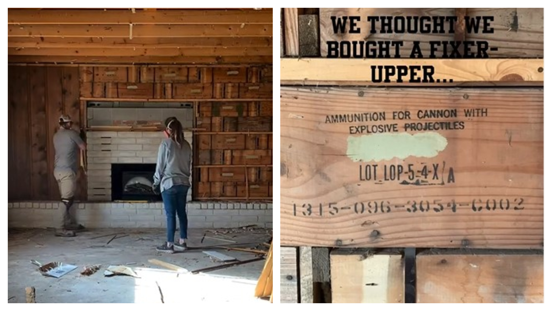 Dar, în timpul renovărilor, în spatele unor panouri, au dat peste un element complet neașteptat: pereți formați din zeci de lăzi de muniție militară, provenite din Al Doilea Război Mondial. „Nici măcar nu știam că așa ceva există, dar am aflat între timp că era o practică obișnuită local în anii ’70, când exista un depozit militar în apropiere. Oamenii puteau cumpăra camioane întregi cu astfel de lăzi la prețuri mici și le foloseau pentru magazii, anexe, ba chiar case întregi.” , au explicat ei.Recent, cei doi au postat un videoclip viral în care surprind momentul descoperirii: în spatele scândurilor și al panourilor din lemn, apar lăzile metalice de muniție, stivuite una peste alta, fixate cu cuie și integrate în pereții casei. Potrivit celor doi, este vorba despre o extindere făcută în anii ’70, când un fost proprietar a folosit materiale militare rămase de la un depozit din zonă.