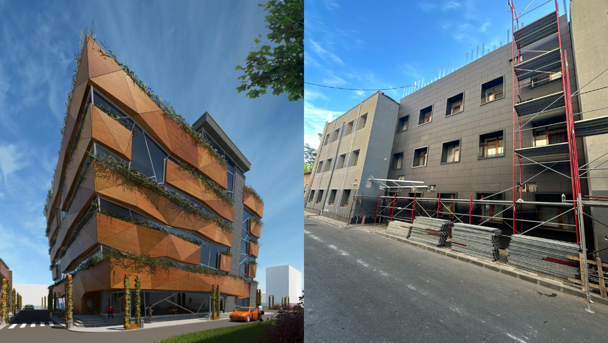 Primarul a postat și o serie de fotografii cu lucrările de construcție, dar și cu planul care ilustrează aspectul finalizat al clădirii.