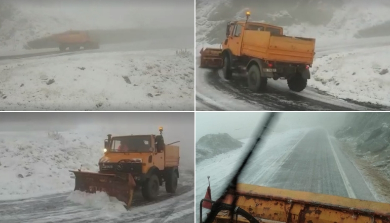 Ninge ca în plină iarnă pe Tranfăgărăşan! Stratul de zăpadă de pe carosabil măasoară deja trei centimetri.