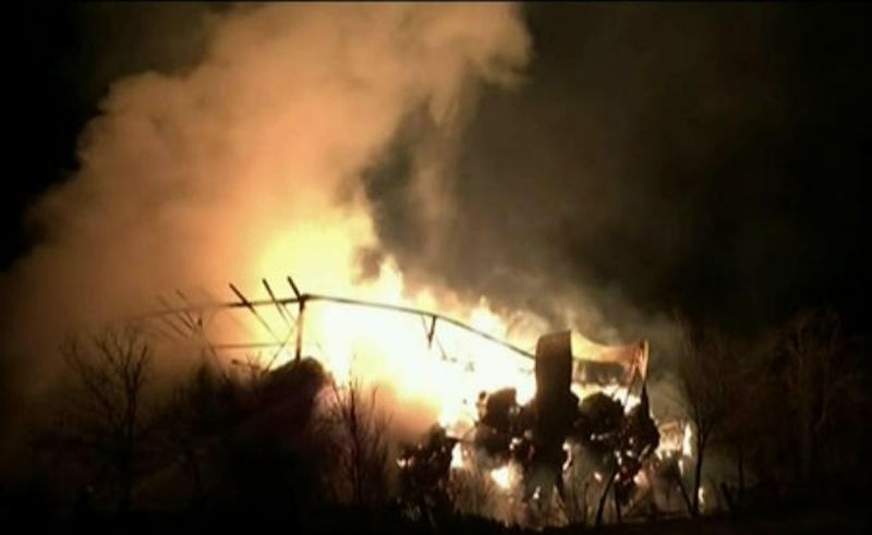 desprinsa din hambarul in flacari si a fost transportat la spital. Pompierii s-au luptat mai bine de o ora sa tina flacarile sub control. Politistii cerceteaza modul in care a izbucnit incendiul.