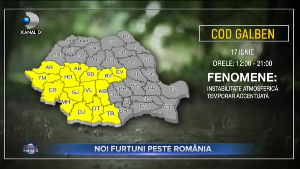 Stirea "NOI FURTUNI PESTE ROMÂNIA" difuzata in cadrul Stirilor KANAL D din 17 06 2021