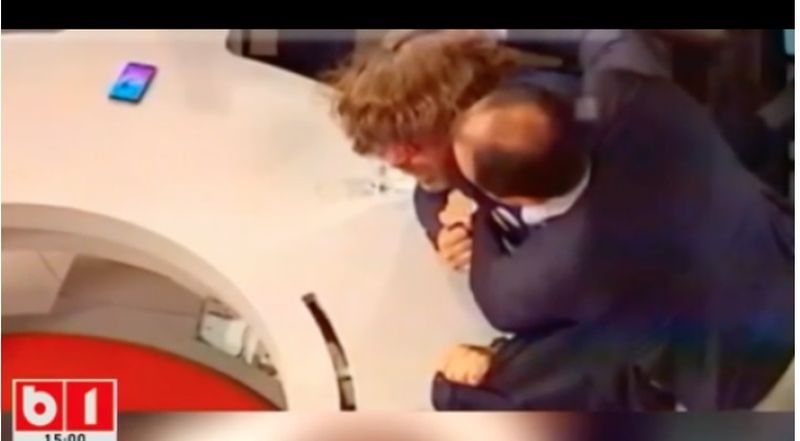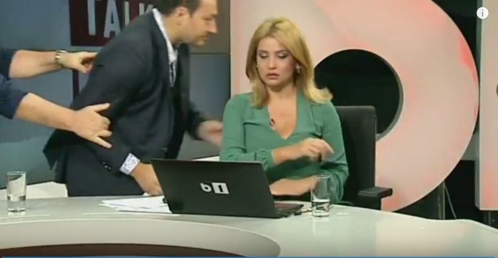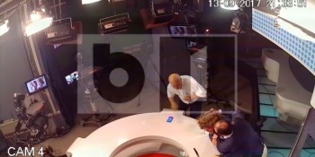 Noi imagini din momentul in care Mirel Palada l-a lovit pe Mihai Gotiu, miercuri, in timpul pauzei publicitare a emisiunii de la B1 TV.
