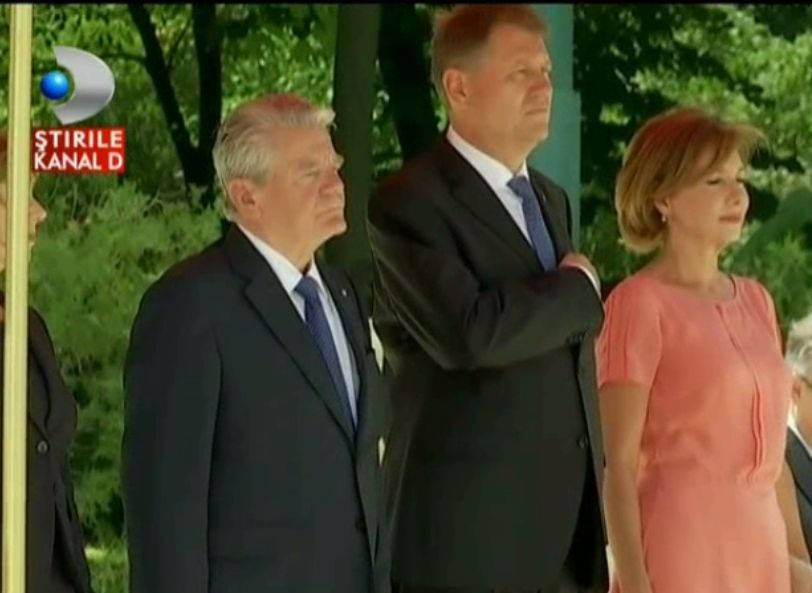 Desi este o vizita de stat si protocolul este unul strict, un membru al delegatiei Germaniei a renuntat la eticheta. Si-a facut aparitia la Cotroceni in blugi, tenesi si cu cercel in ureche. Dar gazdele au avut grija sa treaca peste aceasta...