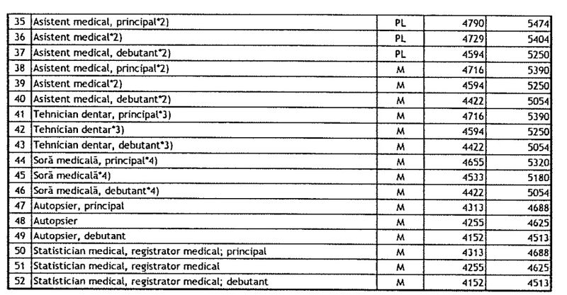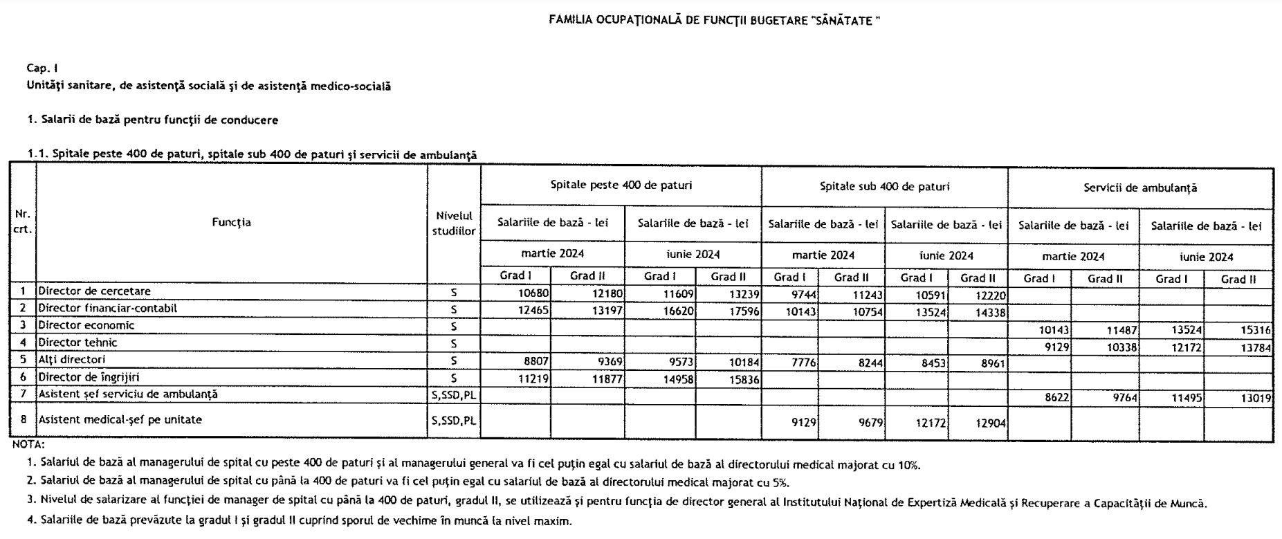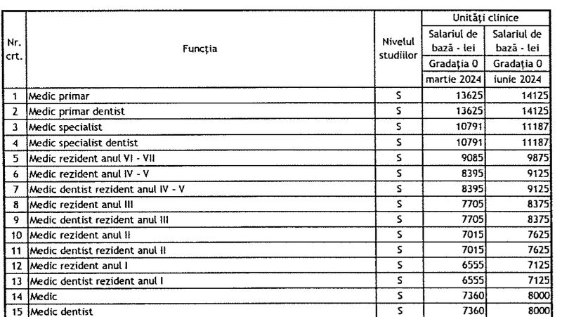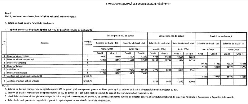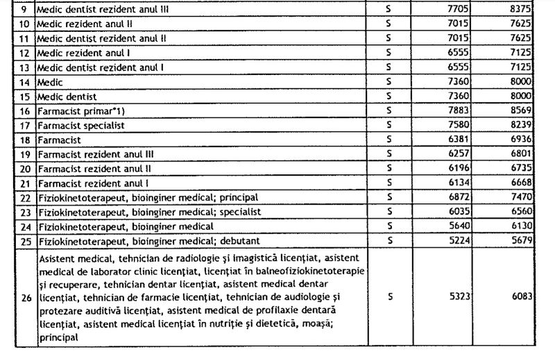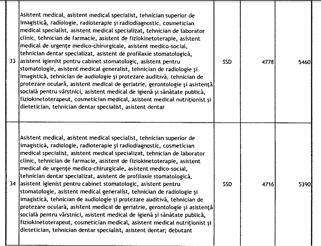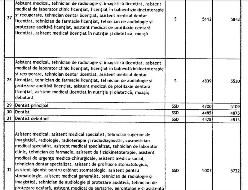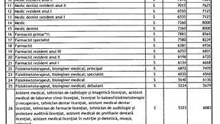 Documentul integral cu salariile din sănătate și asistență socială poate fi văzut aici.