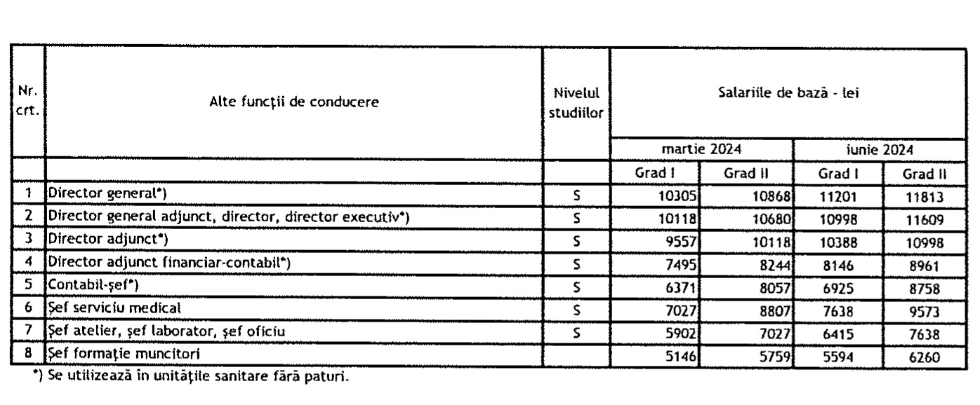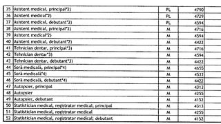 - Exemplele sunt din unități clinice, pentru funcții la gradația 0 (fără vechime).
