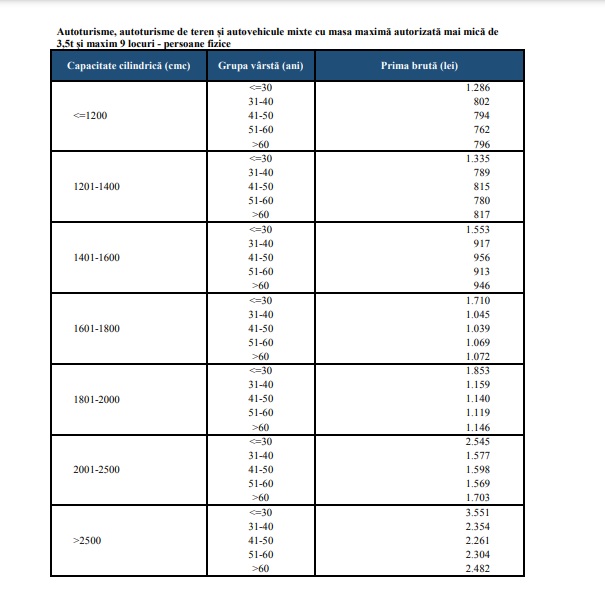 Pentru persoanele fizice, autoritățile propun ca tariful maxim să fie plafonat în următoarele 6 luni la nivelul tarifului de referință, pentru clasa de bonus/malus B0.
