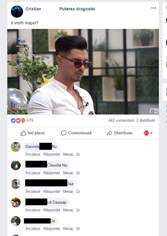 Pe grupurile dedicate emisiunii, voturile sunt împărțite și, deși mulți în vor din nou în casa Puterea Dragostei, există și o mulțime de persoane care susțin că este mai bine fără el în competiție.