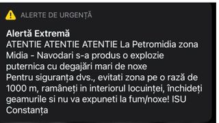 Mesaj Ro-Alert după explozia și incendiul de la Petromidia