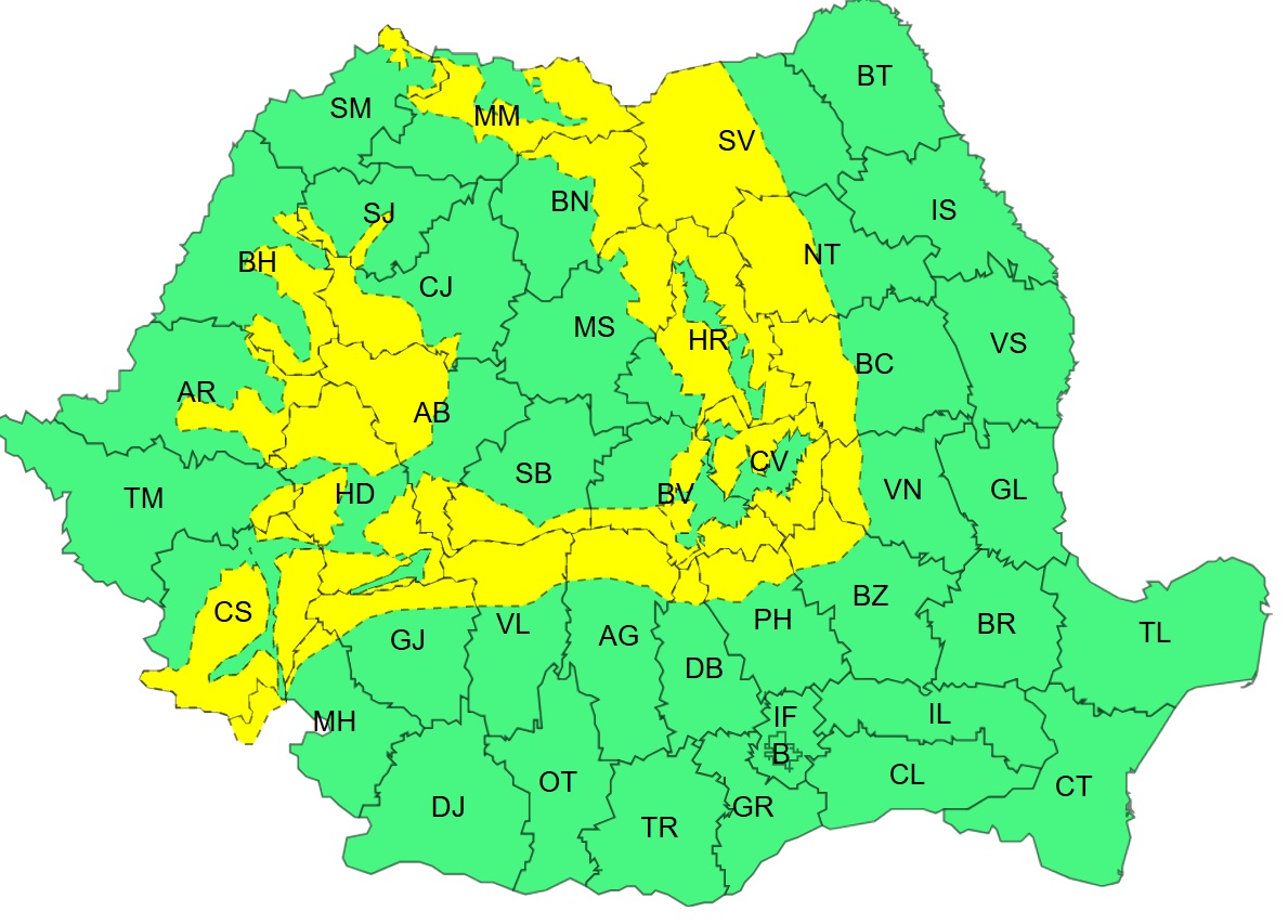 Informarea meteorologică a intrat în vigoare pe 1 ianuarie la ora 10:30 și rămână valabilă până pe 3 ianuarie la ora 10:00. În acest interval sunt aștepyate cantități moderate de apă, intensificări ale vântului, viscol la munte, strat de zăpada, polei.