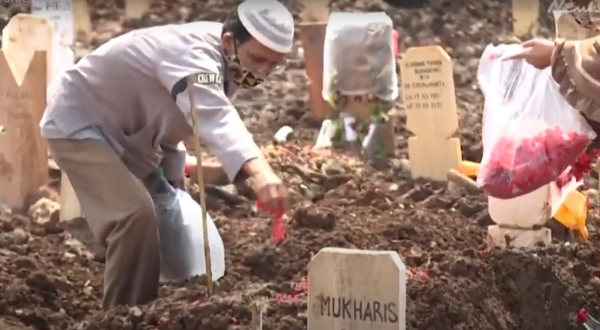 Odată cu creșterea numărului de decese din ultima lună, unii rezidenți de lângă Jakarta au început să-i ajute pe groparii care nu mai făceau față numărului mare de gropi săpate.