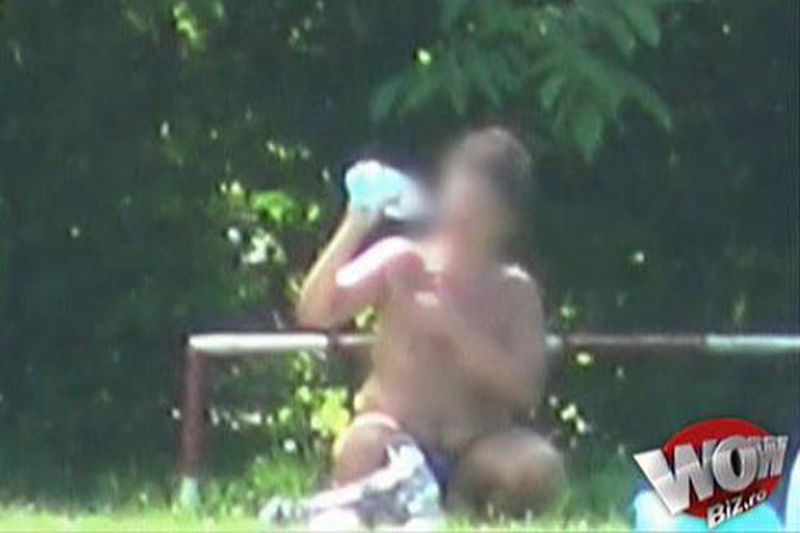 1 din 2 | Nu a mai suportat caldura infernala si a mers sa faca plaja in parc. Si-a dat sutienul jos, si-a aruncat o sticla de apa in cap si s-a racorit