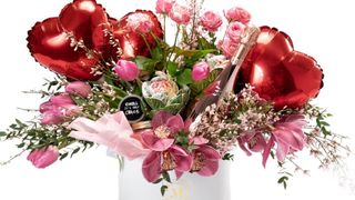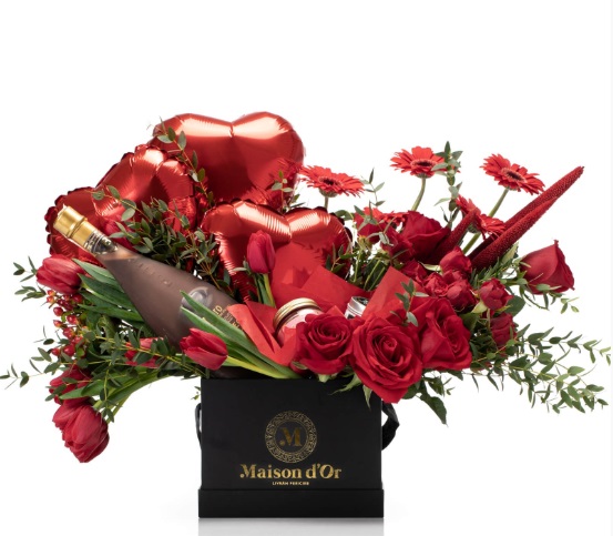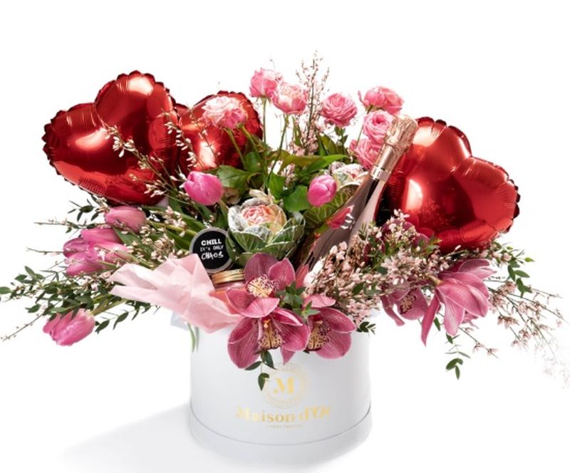In primul rand, iti recomandam o Cutie Rotunda Cu Lalele, Minirosa, Bottega Rose Gold Prosecco, 2 Lumanari Parfumate Si 3 Baloane Inima.