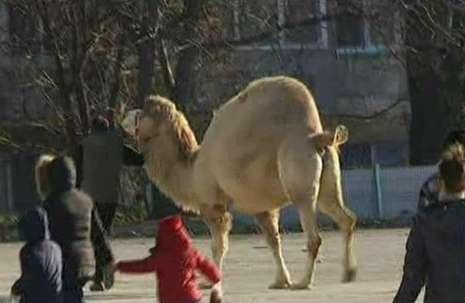 Autogara Militari. De obicei aici vedem autocare. Dar astazi trecatorii au avut parte de o surpriza. Doua camile si o zebra zburdau linistite pe asfalt!
