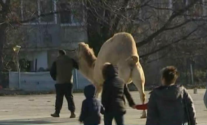 Numai la zoo sau la circ vezi camile, dar se pare ca daca ai un pic de noroc poti sa dai nas in nas cu ele...acolo unde te astepti mai putin. Asa ca lumea de aduna sa vada "minunea". Fiecare incearca sa surprinda momentul inedit.