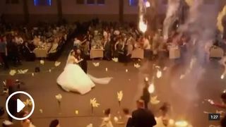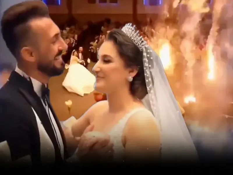 Momentul în care incendiul a izbucnit în sala de nuntă din Irak a fost surprins pe camere de filmat.