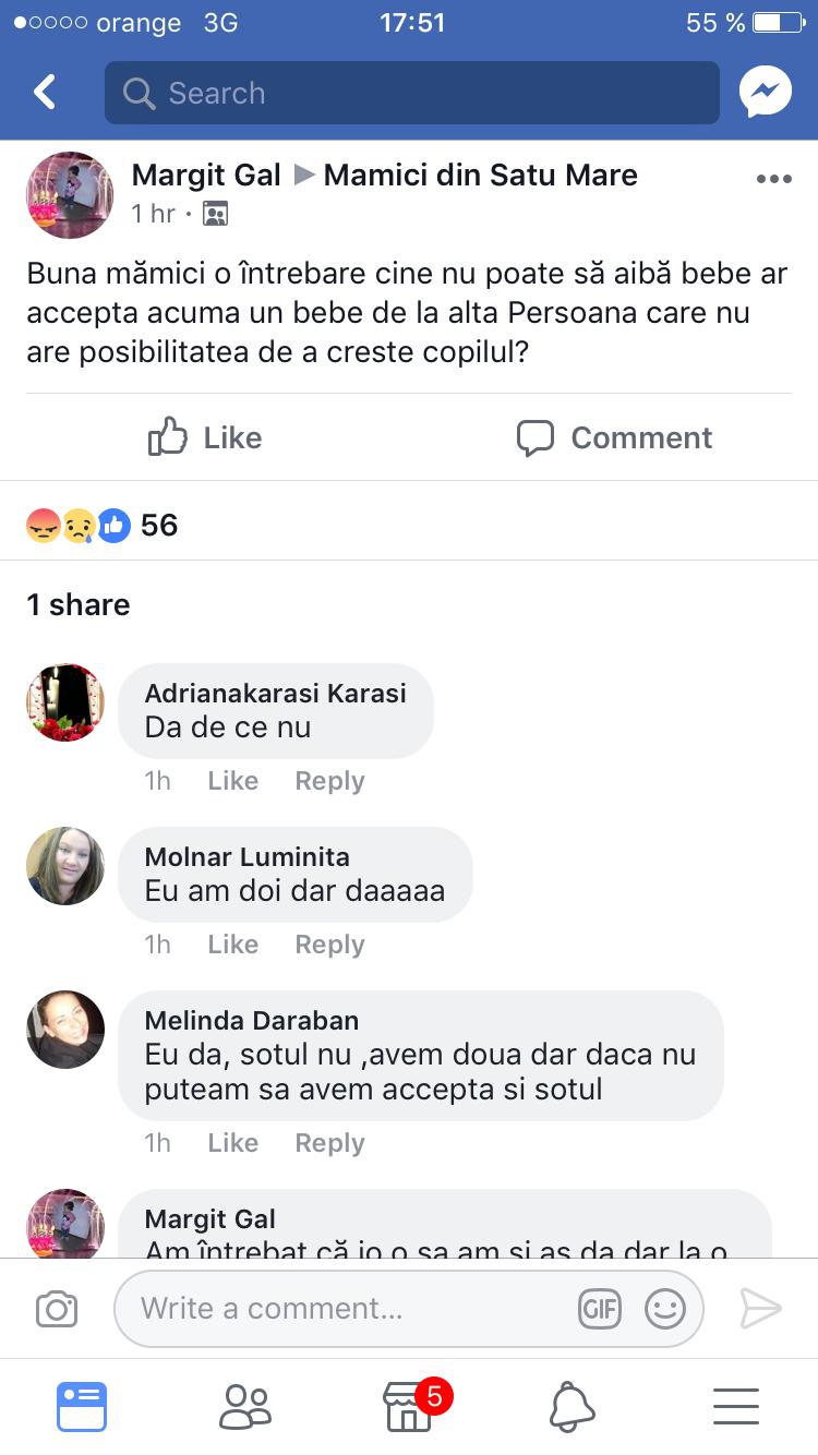 Deși dacă totul putea părea o glumă inițial, femeia a postat anunțuri în diverse grupuri de mămici, iar în momentul în care cineva s-a arătat cu adevărat interesat de a-l lua pe micuț, sătmăreanca a cerut 10.000 de euro în schimbul lui.