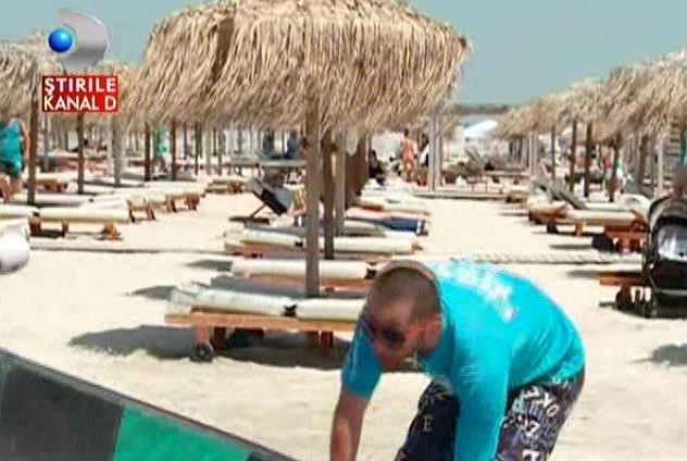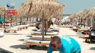 Munca pe plaja nu e doar lapte si miere: trebuie sa infrunti temperaturi ridicate si sa le zambesti tot timpul si celor mai mofturosi turisti. La una dintre plajele de lux din nordul statiunii Mamaia, cei mai fideli angajati sunt sot si sotie.