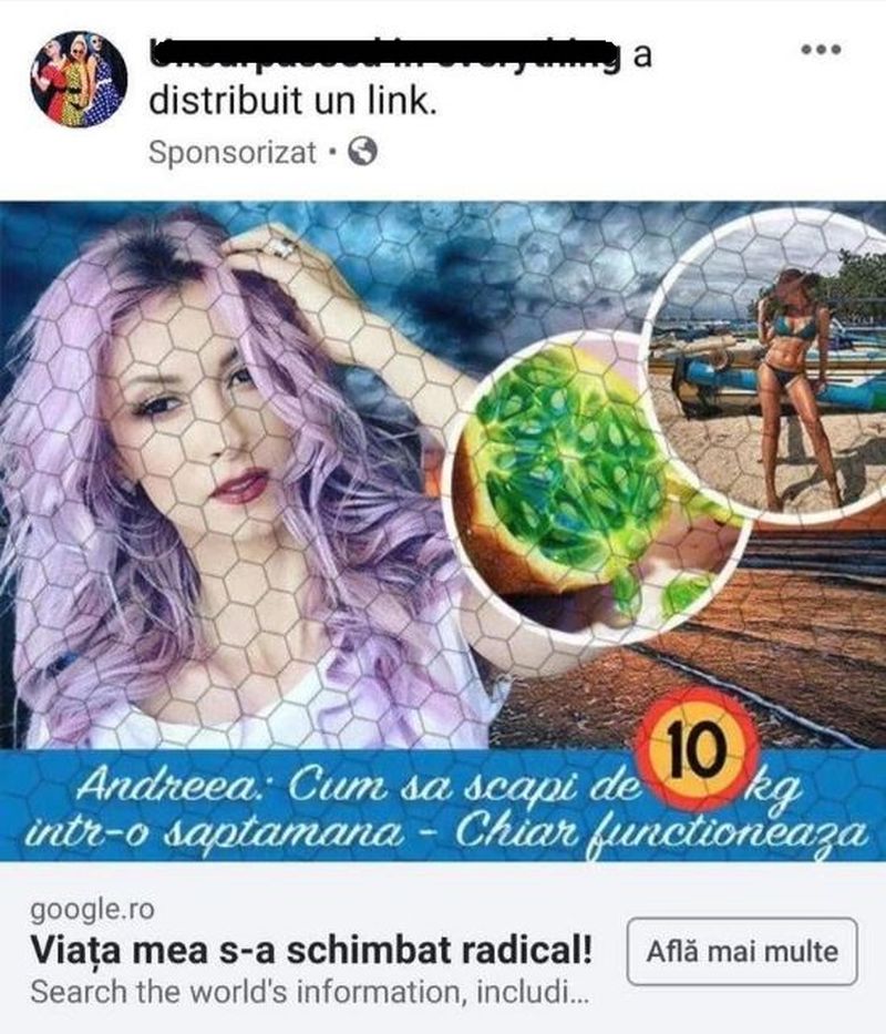 Iar asta se întâmplă, explică Andreea Bălan, pe contul ei de socializare, de câteva săptămâni bune. ”Dacă vedeti acest link, să nu cumva să dați click și să credeți ce scrie acolo! Atenție- EU NU fac reclamă la produse de slăbit!!!”, a anunțat, zilele trecute, Andreea Bălan. Doar că nu o face pentru prima oară, cântăreața care, de curând, a relansat, alături de Andreea Antonescu trupa Andre, atrăgând atenția încă de acum aproape două săptămâni că imaginea ei este folosită în mod fraudulos.