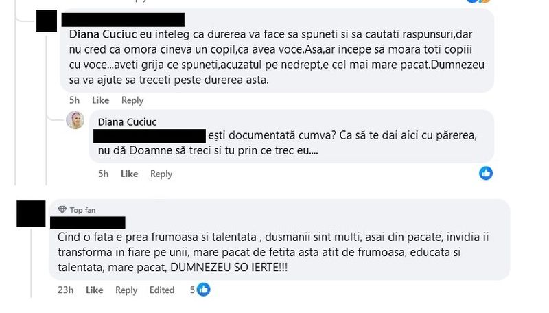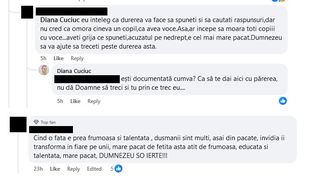 Replica Dianei Cuciuc a venit imediat: „Ești documentată cumva? Ca să te dai aici cu părerea? Nu da, Doamne, să treci și tu prin ce trec eu...”