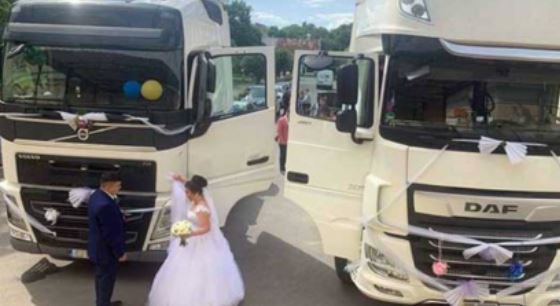 Un cuplu din Cluj care au vrut să-și unească destinele, amândoi fiind șoferi de TIR, nu și-au lăsat deoparte pasiunea pentru drumurile lungi nici în ziua nunții. Mirii au venit la starea civilă din Gherla cu TIR-urile.
