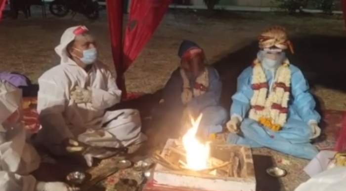 Chiar dacă a fost o situație mai deosebită, mirii au respectat tradiția hindusă, și-au rostit jurămintele și au dat și ocol focului sacru aprins în curtea centrului de îngrijire pentru bolnavii infectați cu Covid-19.