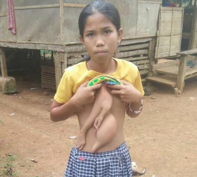 Veronica Cominguez s-a nascut cu parti din fratele ei geaman atasate de coprul ei. Fata, in varsta de 14 ani, ar fi trebuit sa aibe un frate geaman, insa sarcina mamei nu a evoluat normal si Veronica s-a ales cu un frate parazit. Din cauza situatiei financiare precare, familia fetei, care traieste in Iligan, Filipine nu a putut sa plateasca o interventie chirurgicala prin care sa fie indepartate cele doua maini si torsul care erau pe abdomenul fetei inca de la nastere.