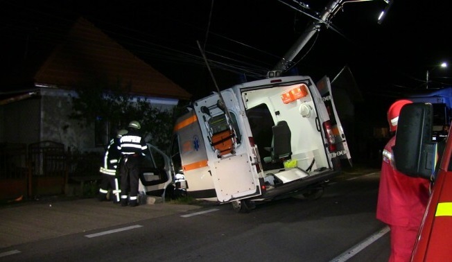 ”Şoferul unei ambulanţe a pierdut controlul volanului, s-a lovit de un parapet metalic, după care a intrat în şanţul din partea dreaptă a drumului. În urma impactului, asistenta şi pacientul din ambulanţă au suferit vătămări corporale, fiind transportaţi la spital de o altă ambulanţă sosită la faţa loculu”, au precizat poliţiştii din Braşov.