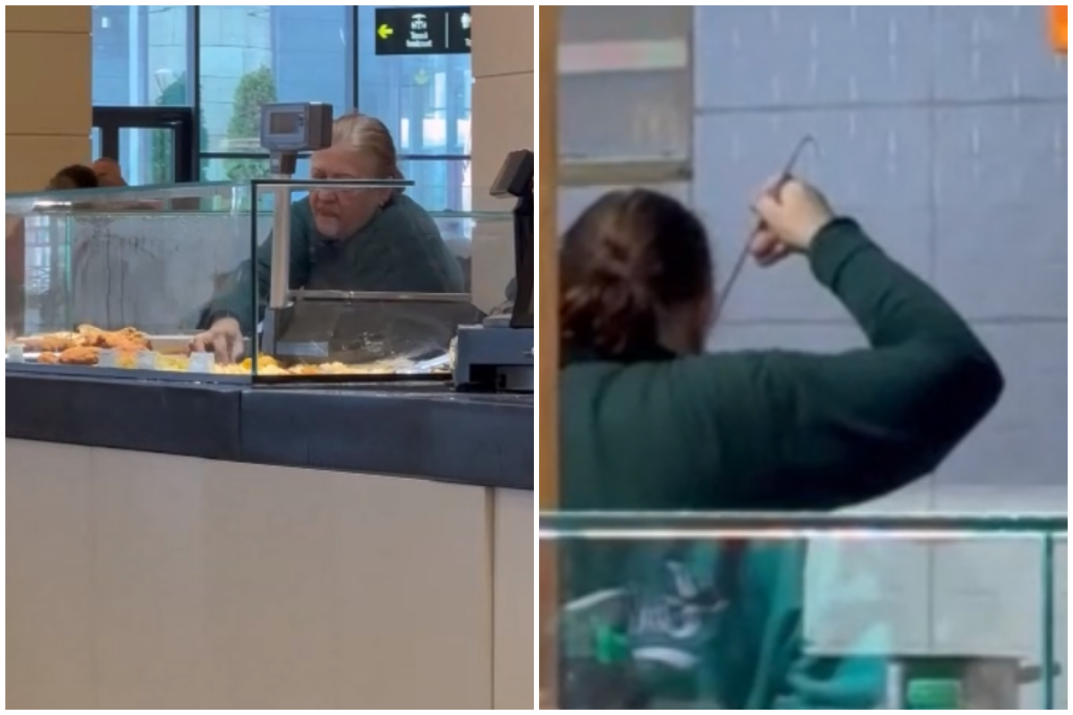 Angajata de la restaurant mănâncă cu mâna produsele destinate clienților