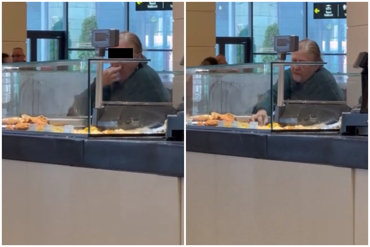 3 din 3 | O angajată a fost filmata de clienți în timp ce mânca cu mâna din mâncarea aflată la vânzare