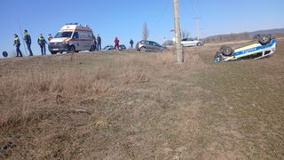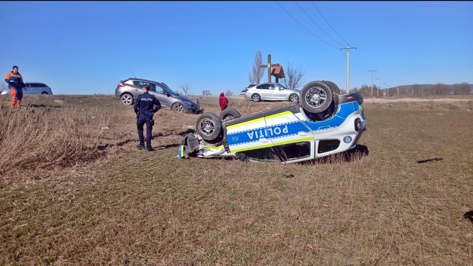 În autospecială se aflau doi polițiști și un tânăr de 22 de ani, elev aflat în practică. Acesta din urmă a suferit mai multe răni în accident și a fost transportat la spital.