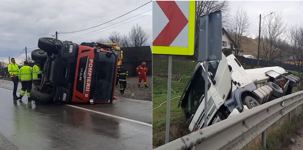 Șoferul ucrainean a pierdut controlul volanului pe carosabilul umed și a ajuns în șanț. În urma accidentului, șoferul a scăpat fără leziuni, dar s-au produs scurgeri de combustibil din cisternă, așa că pompierii au fost chemați să intervină pentru că exista riscul producerii unui incendiu.