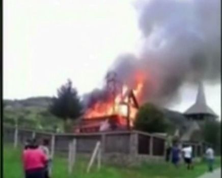 Parca un blestem a cazut pe capul lor! Biserica in care se roaga de cand se stiu a fost invaluita de flacari uriase, iar credinciosii au privit socati cum lacasul se face scrum. O lumanare ar fi aprins focul, chiar dupa incheierea slujbei.##VIDEO17029##