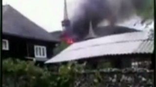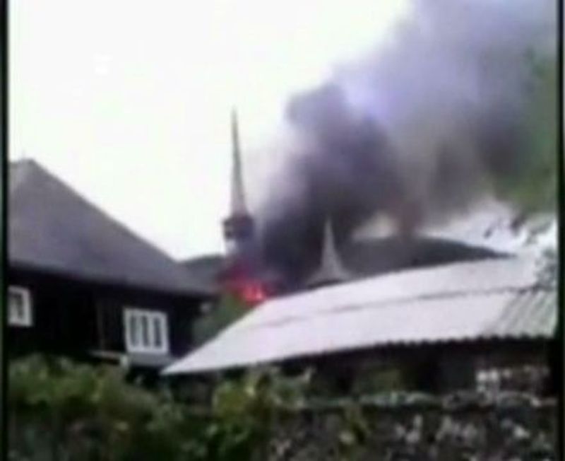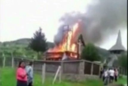 3 din 4 | O biserica din Maramures s-a facut scrum. O lumanare ar fi produs flacarile uriase. Enoriasii si-au varsat necazul tot pe pompieri: "O singura masina! Fereasca Bunul si Induratul Dumnezeu!"