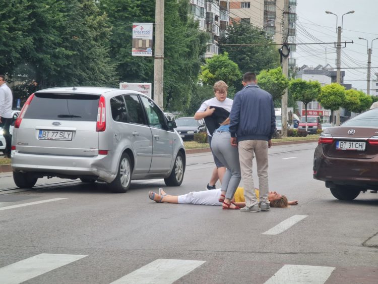 O femeie de 52 de ani, din Botoșani, traversa strada pe trecerea de pietoni, cu nepoțelul ei în brațe, când a fost lovită în plin de o maşină. Din fericire, copilul a scăpat nevătămat în urma impactului.
