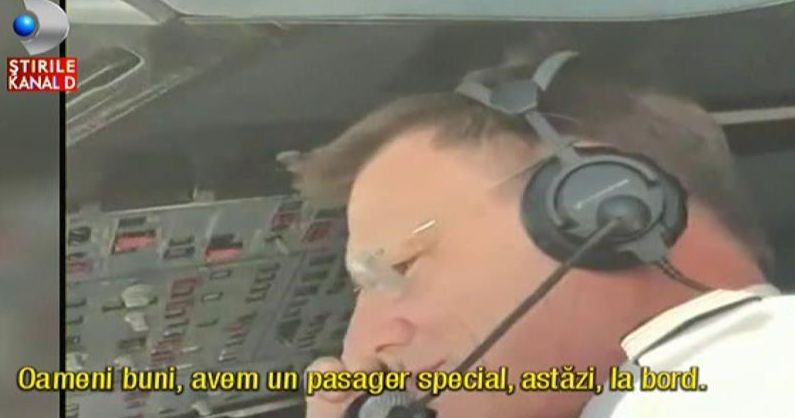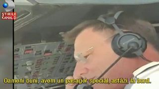 La bordul avionului ce se pregateste de decolare, pilotul face ultimele anunturi. La final insa, barbatul isi ia inima-n dinti si mai adauga ceva. ##VIDEO32821##