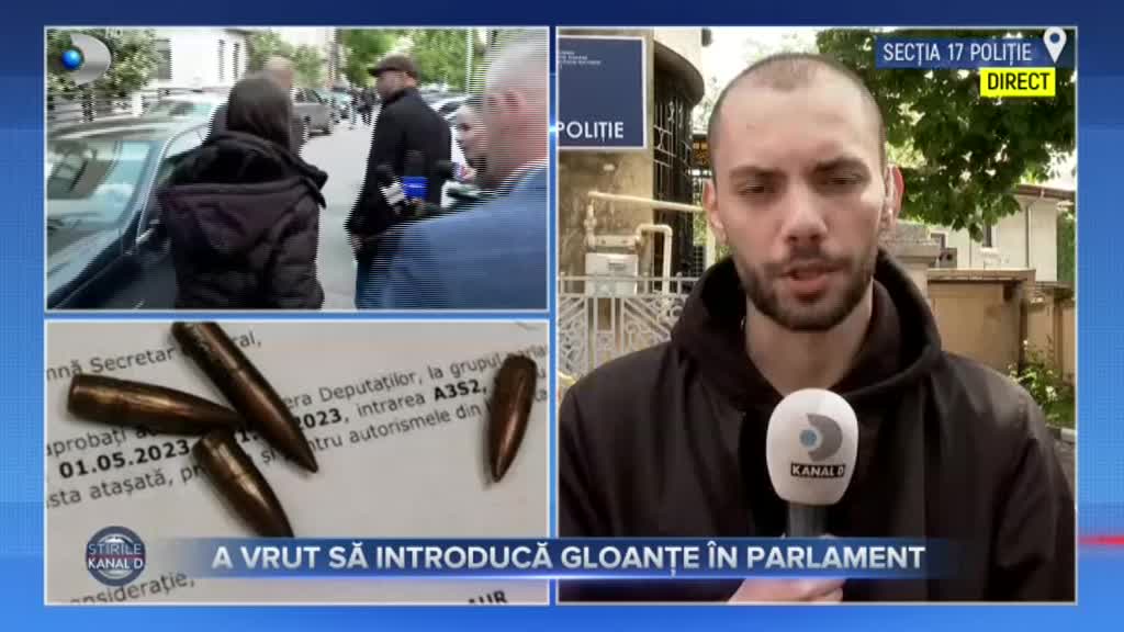 ”În această dimineață, atunci când tânăra a mers la Parlament, la poarta de intrare agenții de securitate au descoperit în geanta ei patru gloanțe. Ar fi motivat că ar fi vorba despre simple suveniruri, însă există suspiciuni că în realitate acele gloanțe ar fi pentru un AK-47. Cartușele au fost confiscate, iar tânăra a ajuns la audieri la secția 17 de Poliție. În cele din urmă tânăra a fost lăsată să plece, însă cercetările în acest dosar continuă.”, transmite Vlad Petrișor, reporter Kanal D.