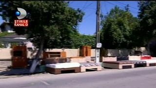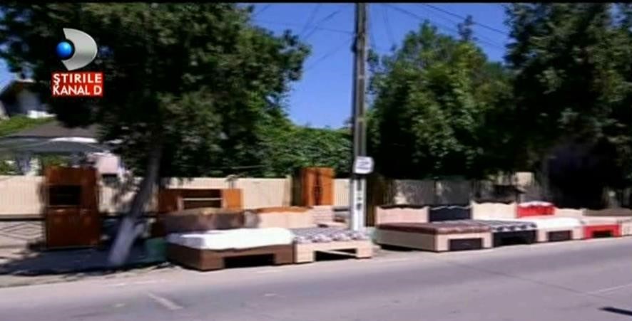 Paturi, dulapuri, mese si scaune. Tarabele cu fructe si legume abia daca se mai vad de dupa piesele de mobilier expuse direct pe strada.