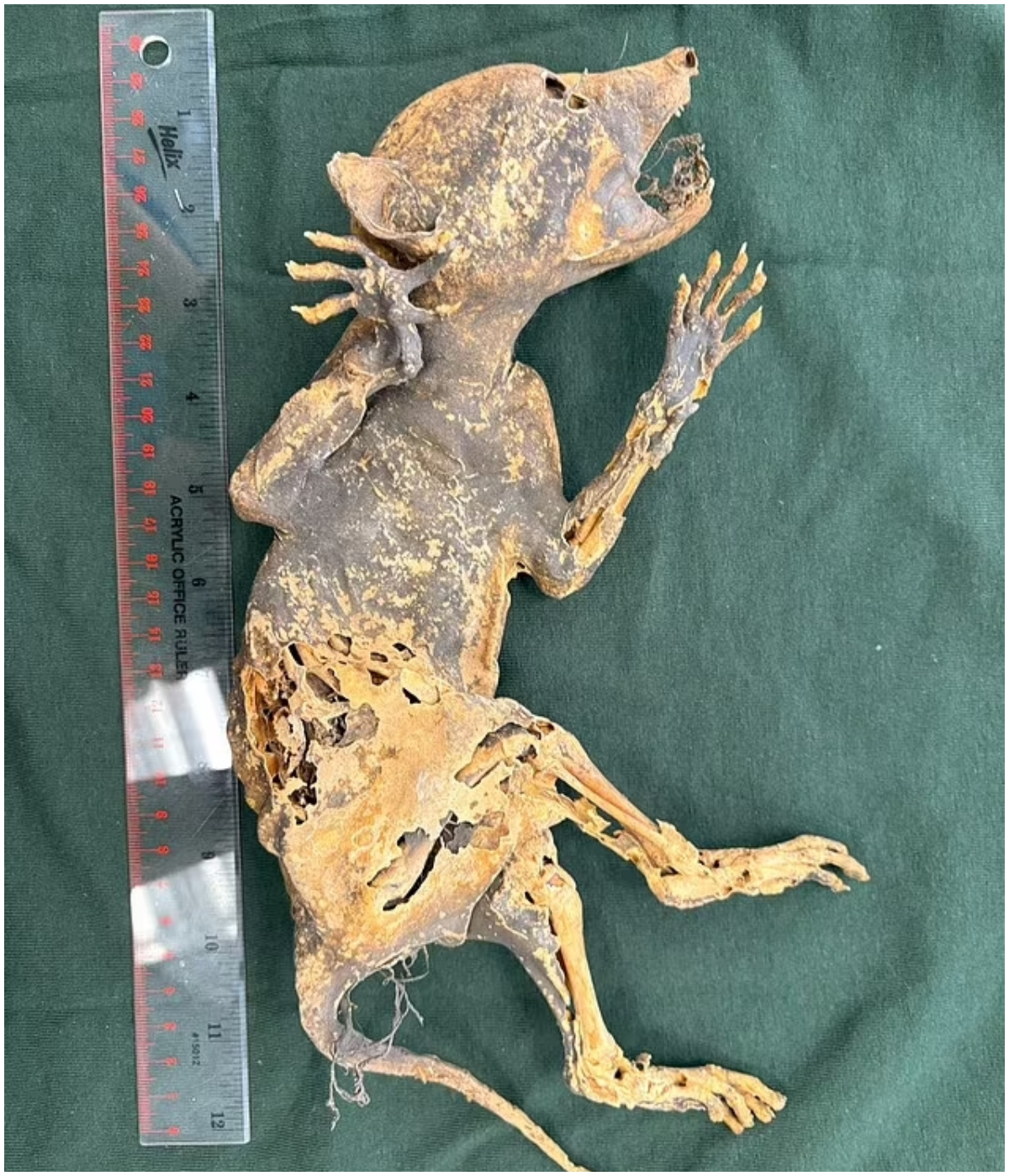O creatură misterioasă cu labe asemănătoare mâinilor de om a fost găsită mumificată într-o clădire istorică dintr-un oraș american. Nimeni nu știe cu siguranță despre ce este vorba.