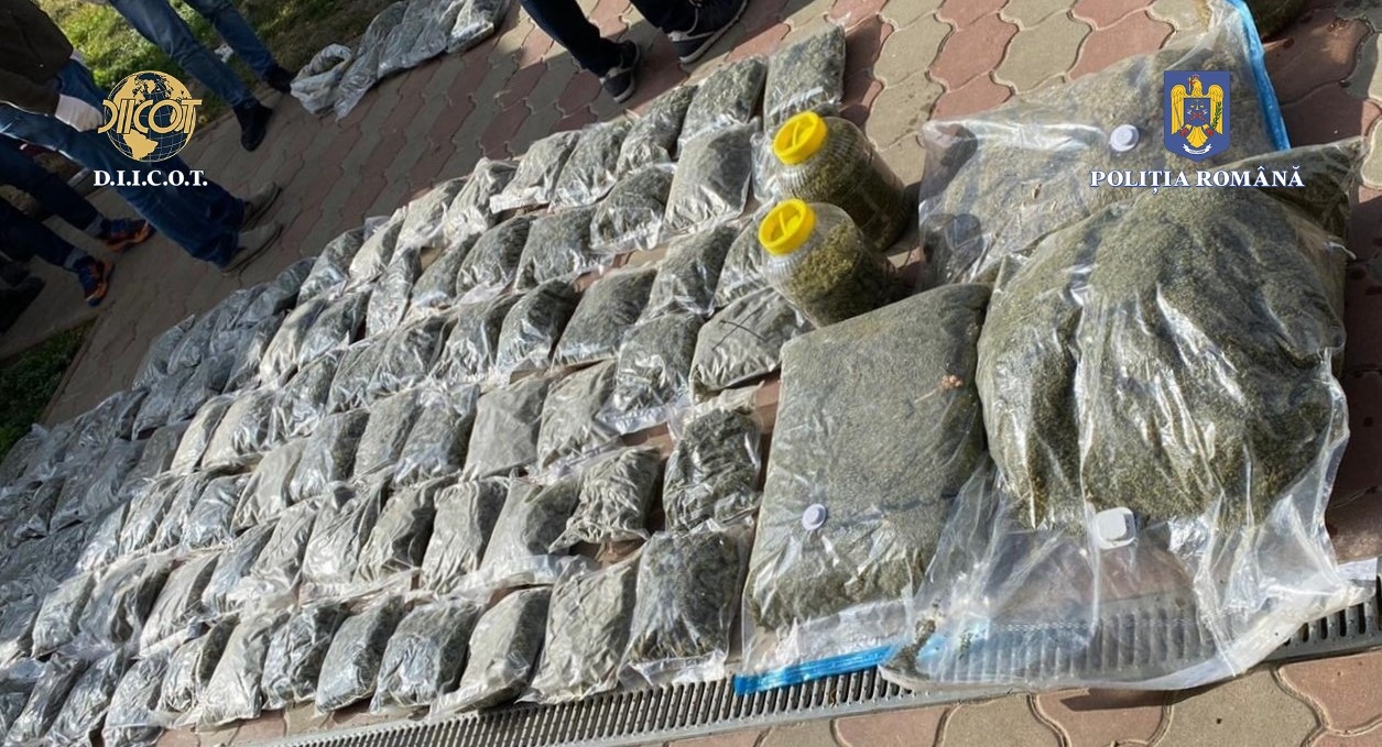 „La data de 20.10.2022 au fost puse în aplicare 5 mandate de percheziție domiciliară, în municipiul București și județul Vrancea, în două dintre locații fiind identificate și ridicate aproximativ 50 de kilograme de canabis, parte din cantitate fiind disimulată într-un perete fals din beciul uneia dintre locuințe” a
