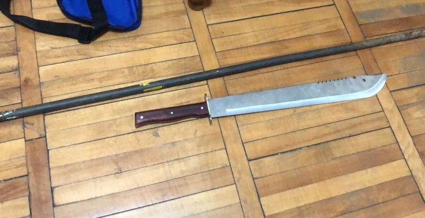În urma controlului corporal, asupra tânărului de 16 ani, a fost găsită o macetă cu lungimea de 70 cm și lama de 52 cm. De asemenea, una dintre persoanele amenințate de către grupul de tineri le-a indicat jandarmilor locul unde a fost aruncată de către aceștia o rangă din fier, cu lungimea de 130 cm.