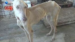 In tarcul alaturat zarim un catel traumatizat. Plin de purici, tremura de frica si se ascunde intr-un colt.