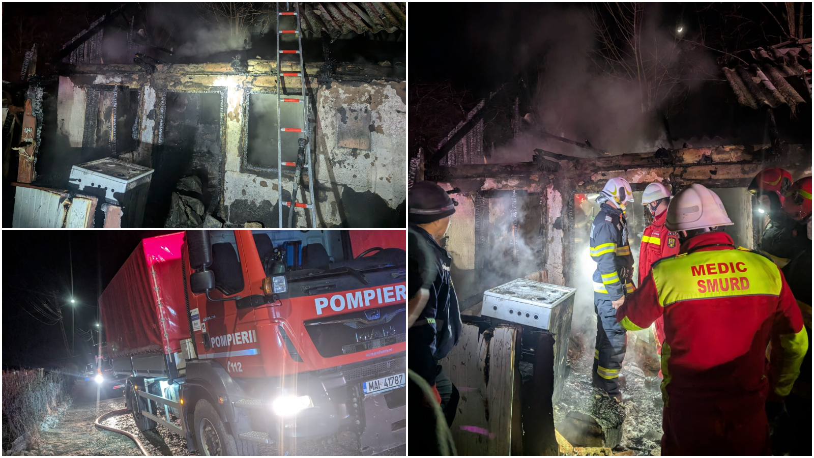Pompierii au găsit-o pe femeie carbonizată. Ar fi avut fracturi la picioare și a rămas prinsă în locuința care s-a făcut scrum