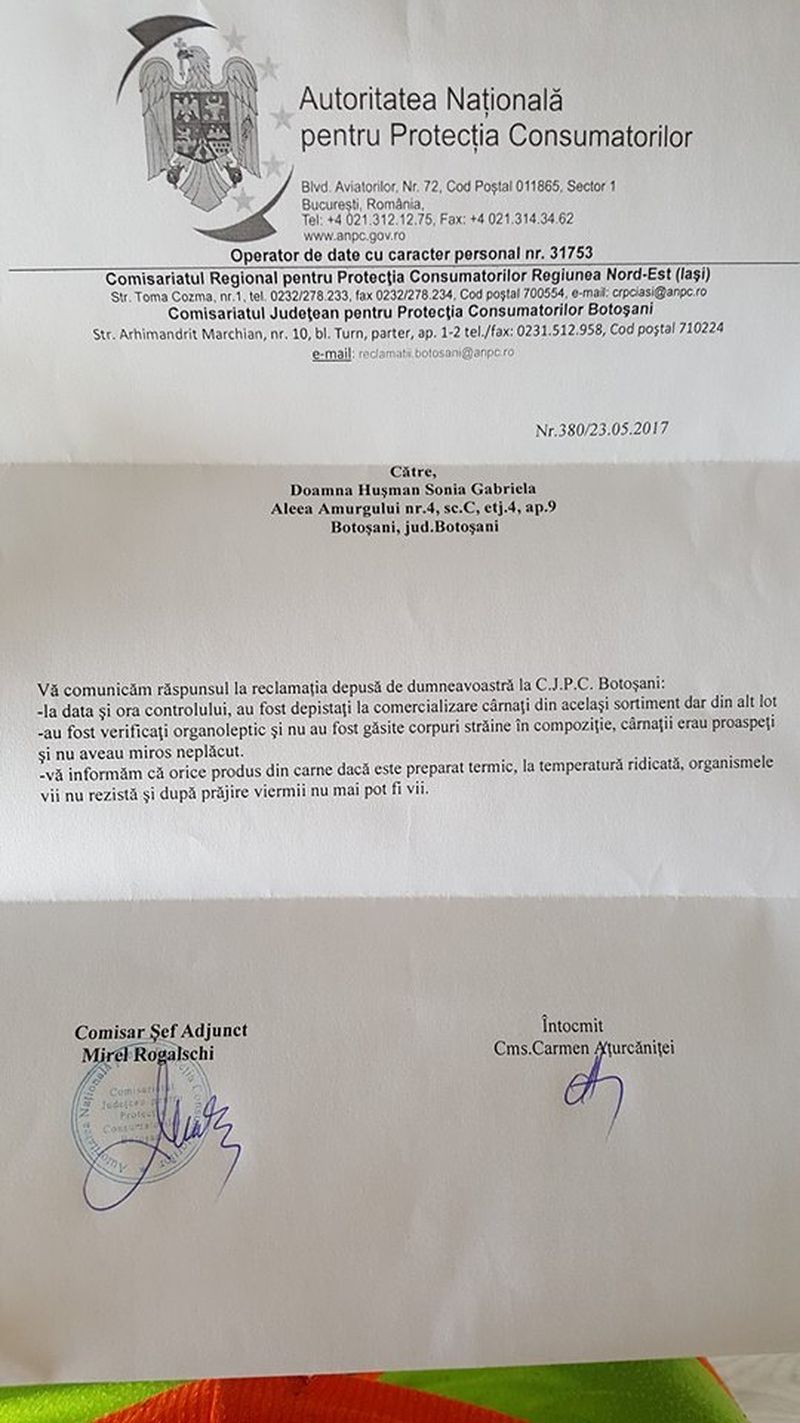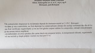 In produs au inceput sa misune mici viermi, iar imaginile postate de femeie pe Facebook vorbesc de la sine. Mai trist este ca ea a facut o reclamatie la cei de la Protectia Consumatorului, iar acestia i-au transmis ca nu au gasit nimic in neregula la controlul efectuat. "Buna seara! Apelez la voi ca vad ca altfel nu se poate.. cu aproximativ o luna in urma am cumparat de la un renumit market...