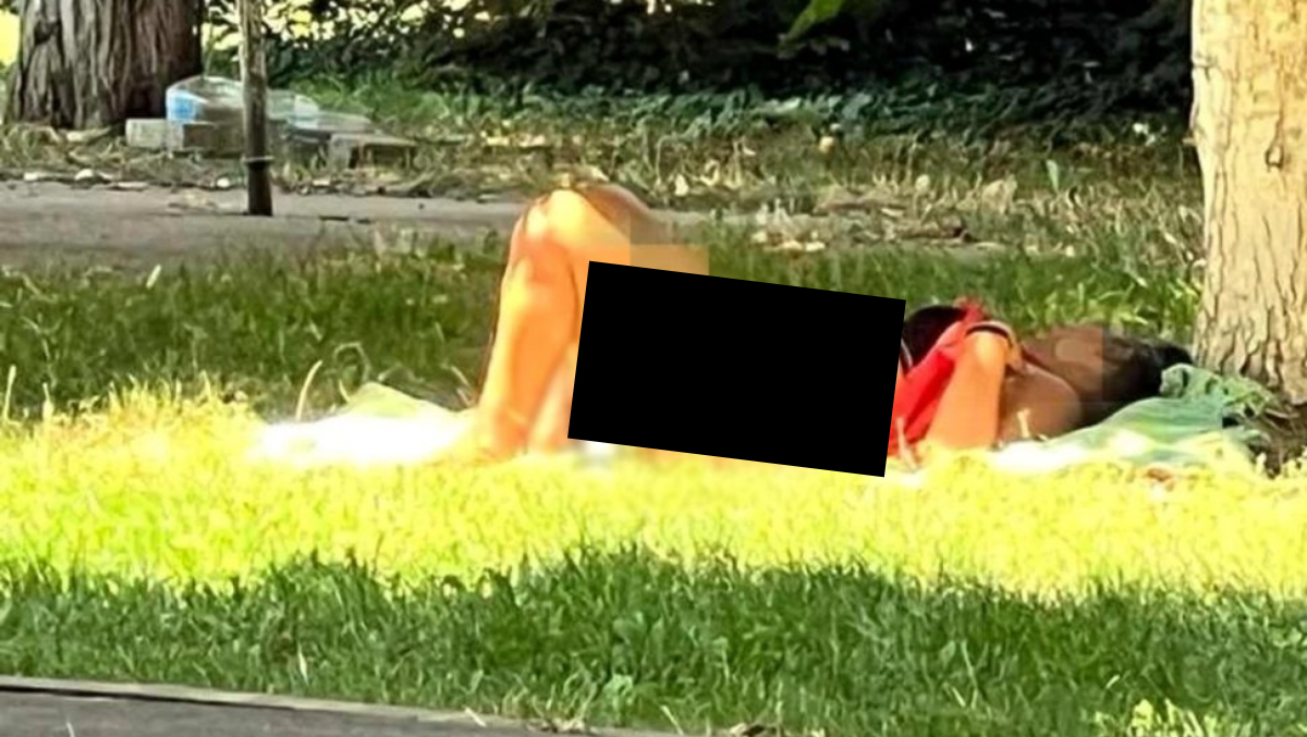 Trecătorii din Arad au observat o femeie dezbrăcată făcând plajă într-un parc, ca la nudiști. Aceasta era în tranzit și urma să își caute un loc de muncă
