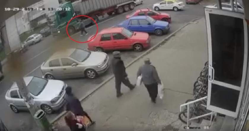 Tragedia a fost surprinsă de o cameră de supraveghere. Pe imagini se poate observa cum șoferul oprește camionul în mijlocul străzii, fără să fie vreo trecere de pietoni.
