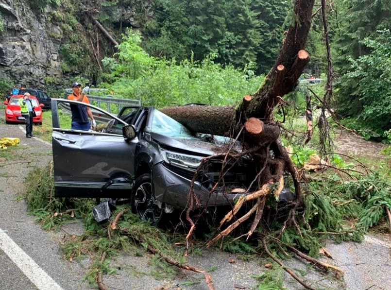 1 din 3 | Vremea face ravagii în România, iar astăzi, 26 iulie, o femeie de 64 de ani a murit după ce un arbore a căzut peste un autoturism pe DN 67 C – Transalpina.