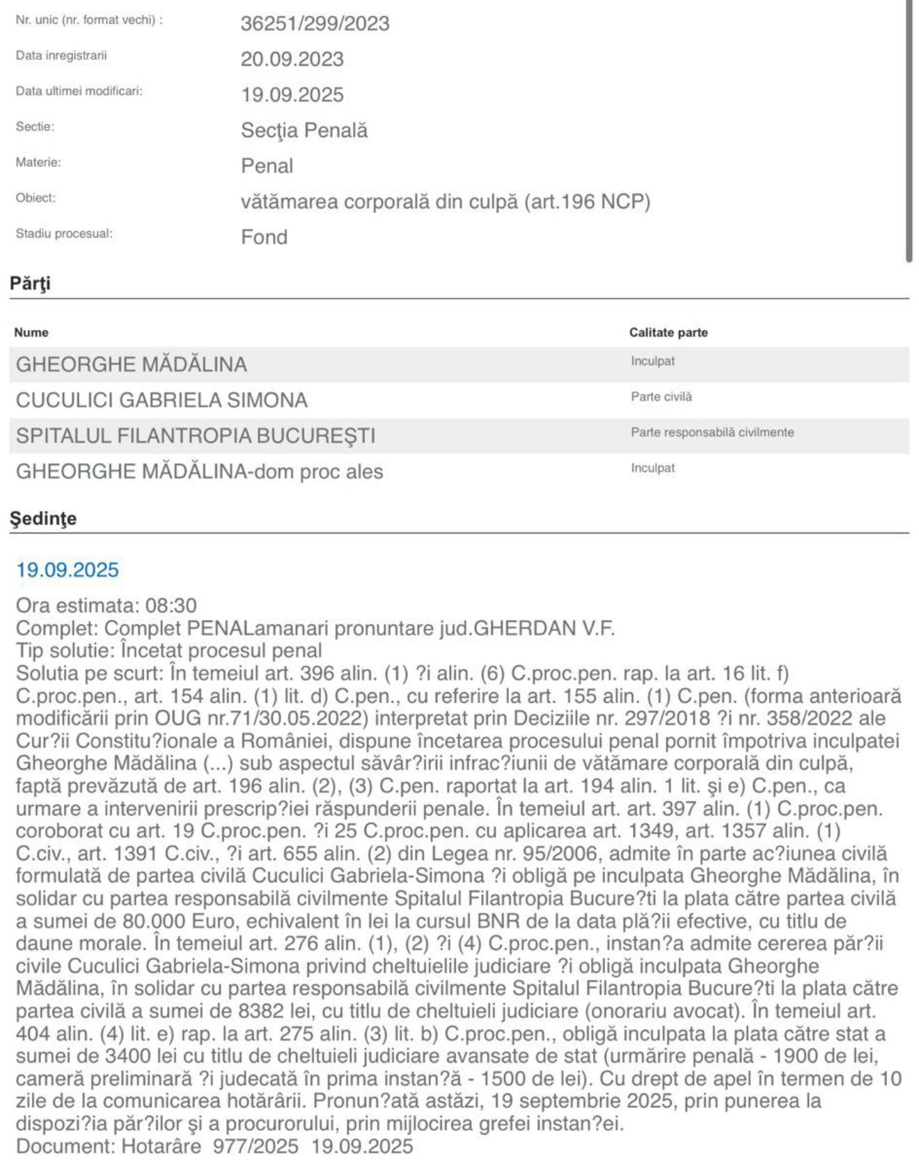 O pacientă din București a trecut printr-un adevărat coșmar la Spitalul Filantropia. Din cauza unei manevre greșite și a unei decizii medicale incorecte, femeia a fost la un pas de moarte. Instanța a obligat unitatea medicală și medicul ginecolog să achite despăgubiri morale în valoare de 80.000 de euro.